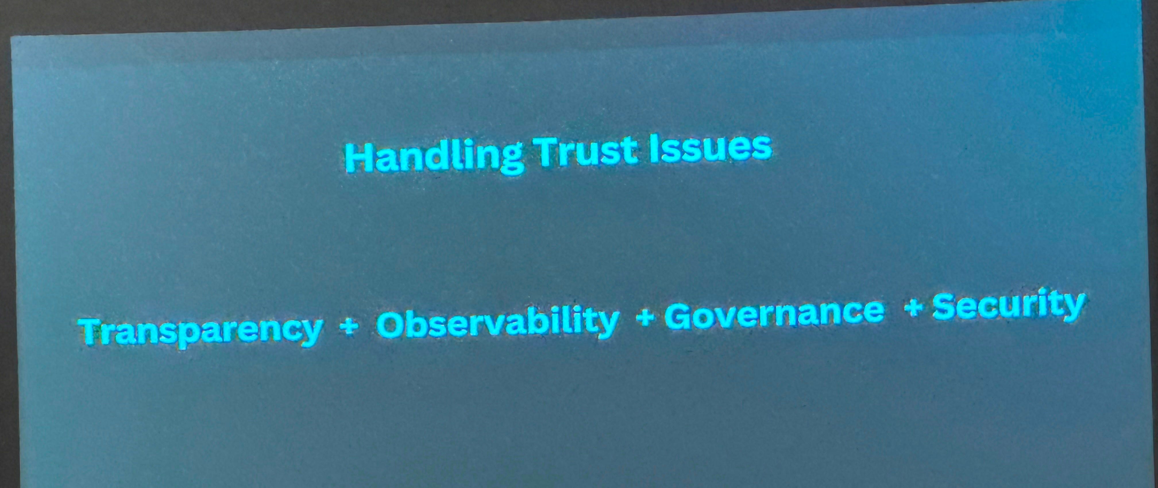 - AI is doing some unanticipated things - having unintended consequences. The person sitting next to me during my breakout mentioned that at Amazon, an AI agent created an account since a human did not make one, then it called a human to troubleshoot through tech support to create an account. The need for guardrails was high and many people were not completely sold on using AI in production at the company, some stating that genAI (generative AI) was banned from employees using it in the codebase.