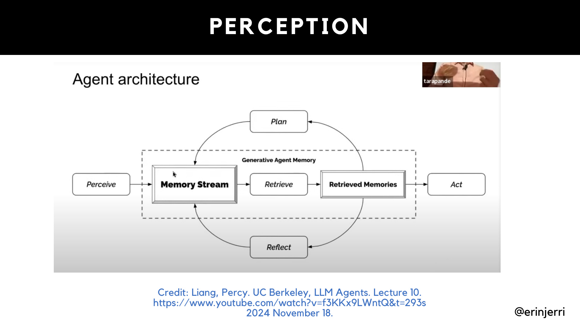 See the graphics from my presentation which reference the concept of the creation of memory by Jason Jerald (author of the VR Book), Percy Liang (Stanford Professor) from his lecture recently at UC Berkeley on cybersecurity, and the ending keynote, Shruti Bhat, founding team member of Rockset (acquired by OpenAI) all mentioned.